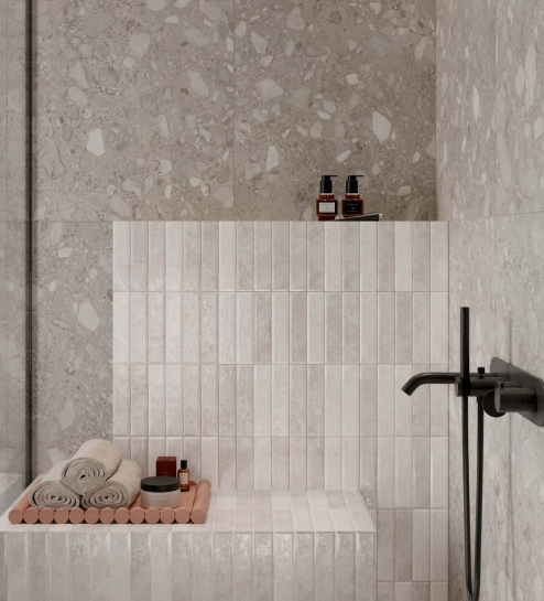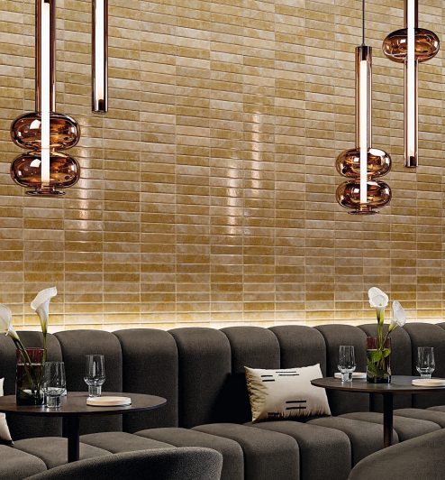 Golden Hour si presta perfettamente per rivestimenti di ambienti bagno, cucina e living, sia in contesti residenziali che commerciali. La sua capacità di combinare tonalità neutre con colori più intensi permette di creare composizioni personalizzate, adatte sia ad atmosfere minimal sia a progetti più creativi e dinamici.