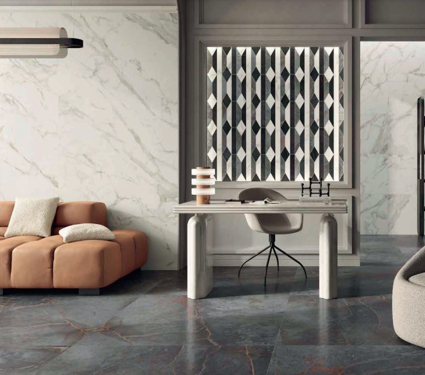 On stage si rivolge alle esigenze d’interior design attraverso colori intensi e raffinati che invitano a creare abbinamenti cromatici e materici, con formati prestigiosi e due finiture per sviluppare interazioni originali tra pareti, pavimenti ed elementi d’arredo.