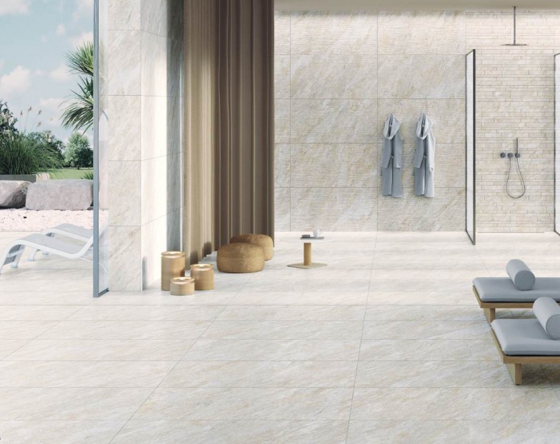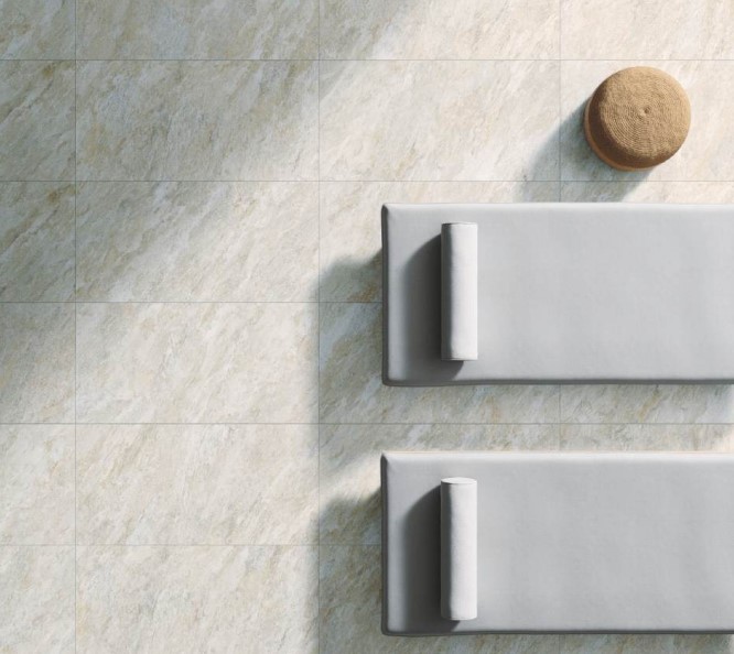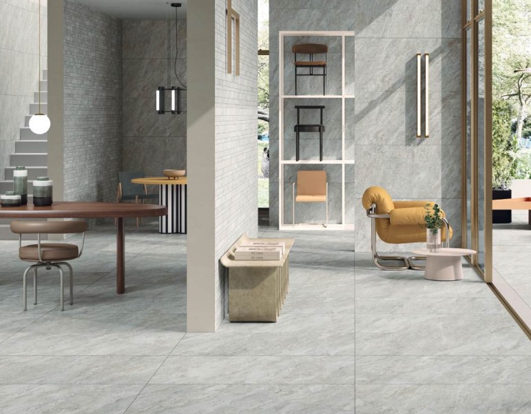 Dicta è disponibile in una ampia gamma di formati e in diverse varianti cromatiche, consentendo molteplici combinazioni estetiche per pavimenti e rivestimenti.