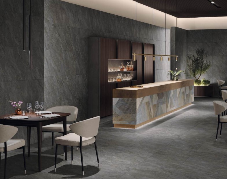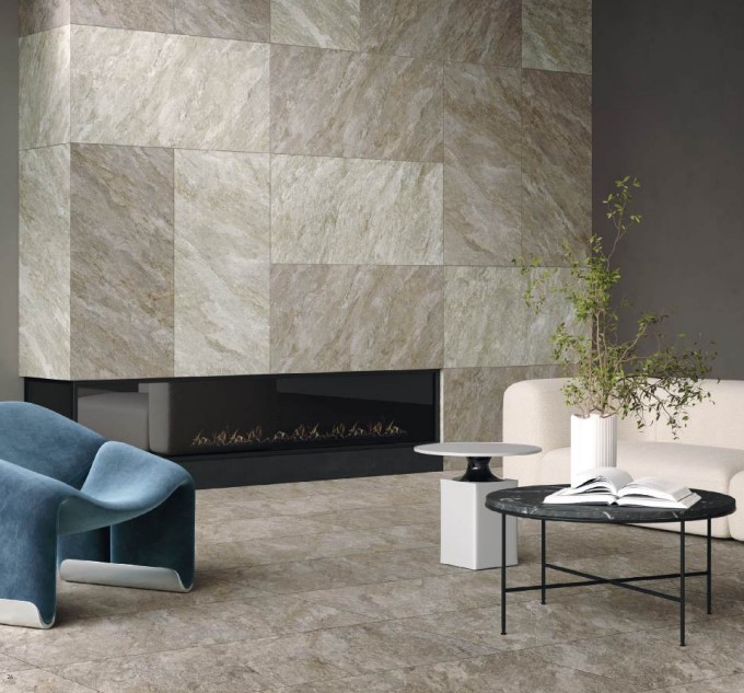La collezione Dicta di Monocibec propone piastrelle in gres porcellanato ad effetto pietra naturale, pensate per chi desidera un design sofisticato e una forte personalità materica negli spazi interni ed esterni. La superficie presenta una tessitura grafica ricca di dettagli dinamici che ricrea l’eleganza discreta della pietra naturale, garantendo estetica, durata e versatilità.